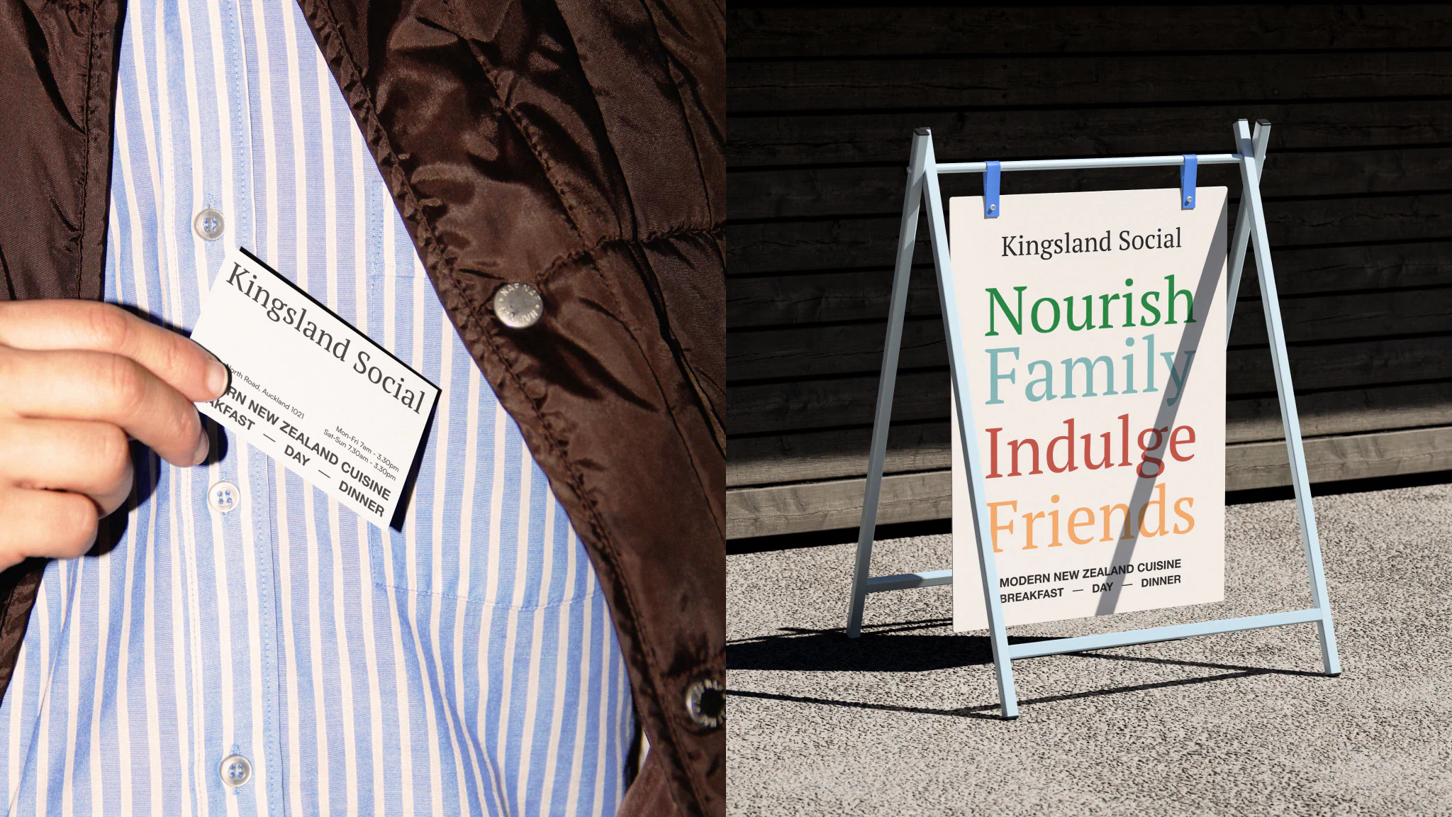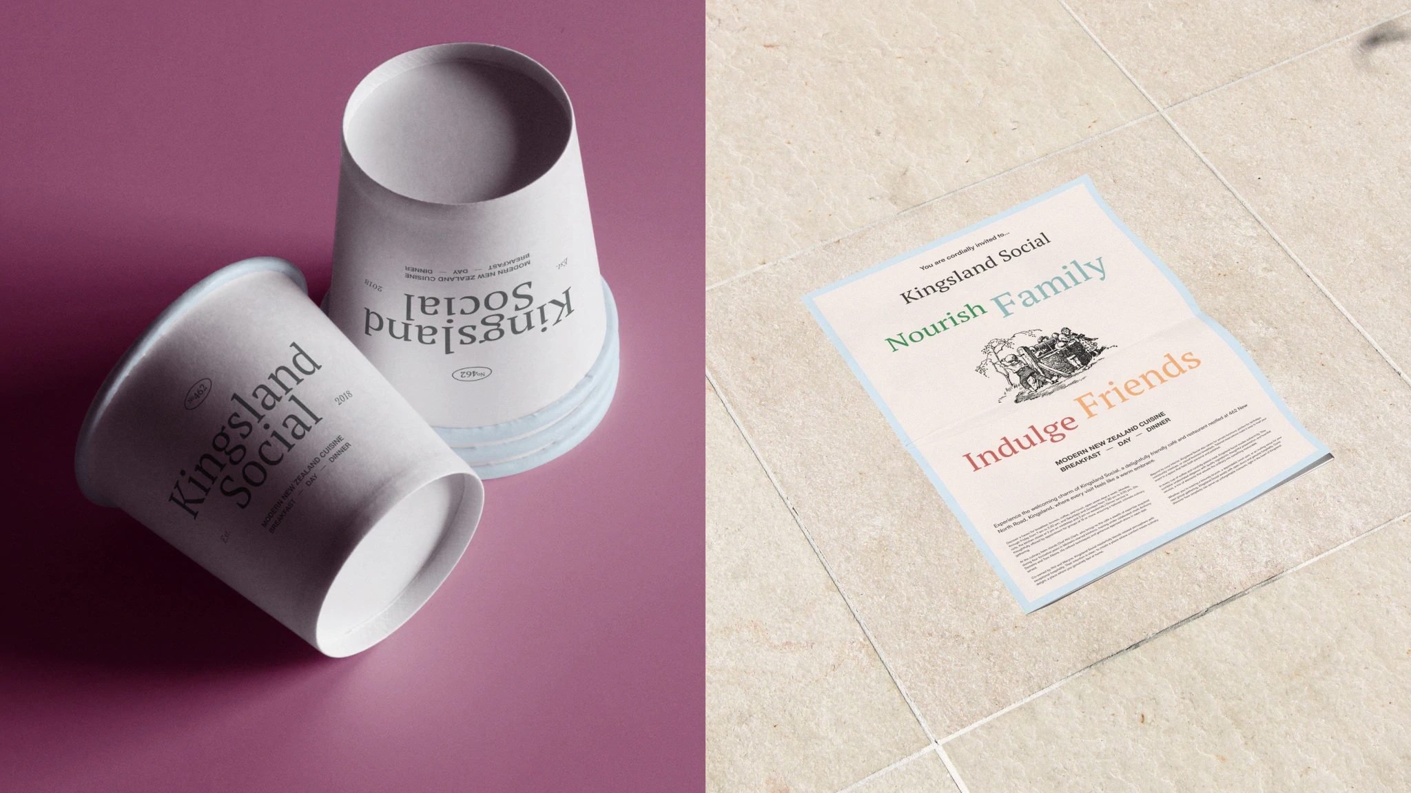 The visual identity was designed to feel familiar and welcoming, drawing inspiration from the kinds of restaurants Phil had admired in the European villages where he once frequented. He wanted Kingsland Social to feel like a place that had been serving passersby for decades. The logo strikes a balance between the traditional and the contemporary, evoking a strong sense of place while remaining accessible and unpretentious.