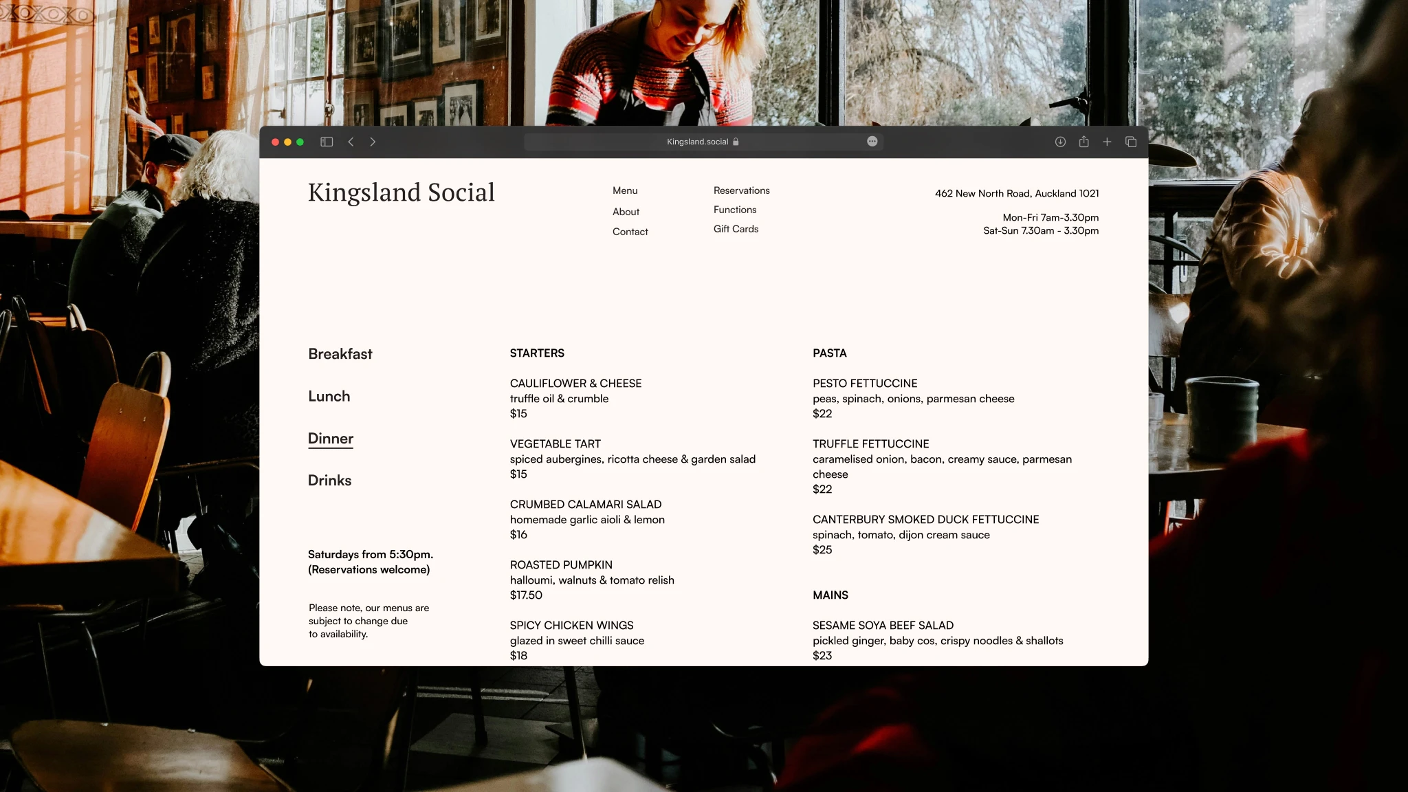 I developed the brand identity and website concept for Kingsland Social by creating a visual system that balanced traditional village bistro charm with contemporary accessibility. The design featured a welcoming logo, bold typography, and a food-focused layout that supported both everyday dining and event bookings while capturing the venue's easygoing, communal atmosphere. The branding successfully established the café's tone and market position, helping it become a beloved local institution.