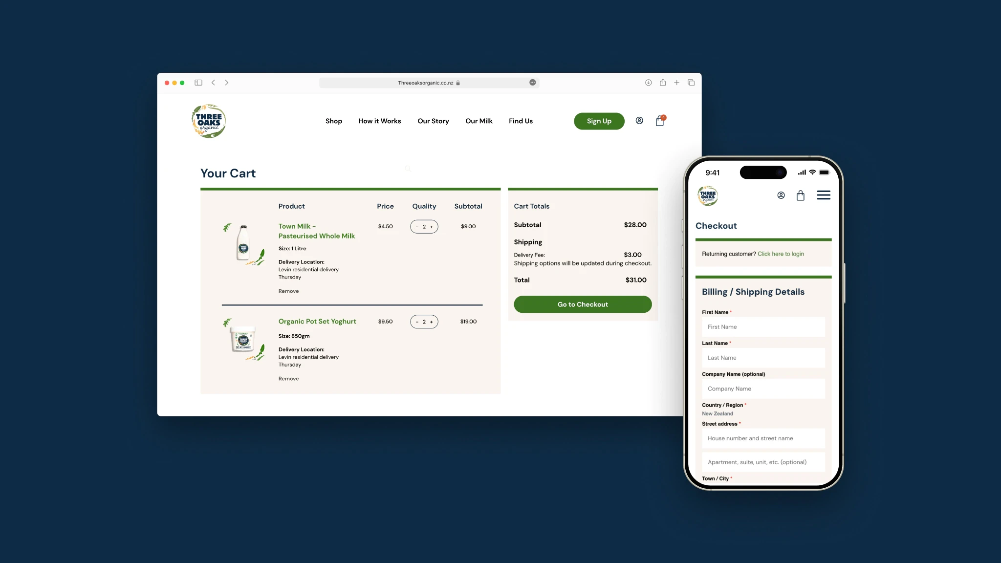 Three Oaks Organic produces premium organic, raw milk products with a strong commitment to animal welfare, regenerative farming and full traceability. Despite their outstanding practices and loyal following, their online presence didn’t reflect the quality or credibility of their offering, and their existing website didn’t meet the unique requirements of their regulated raw milk business.