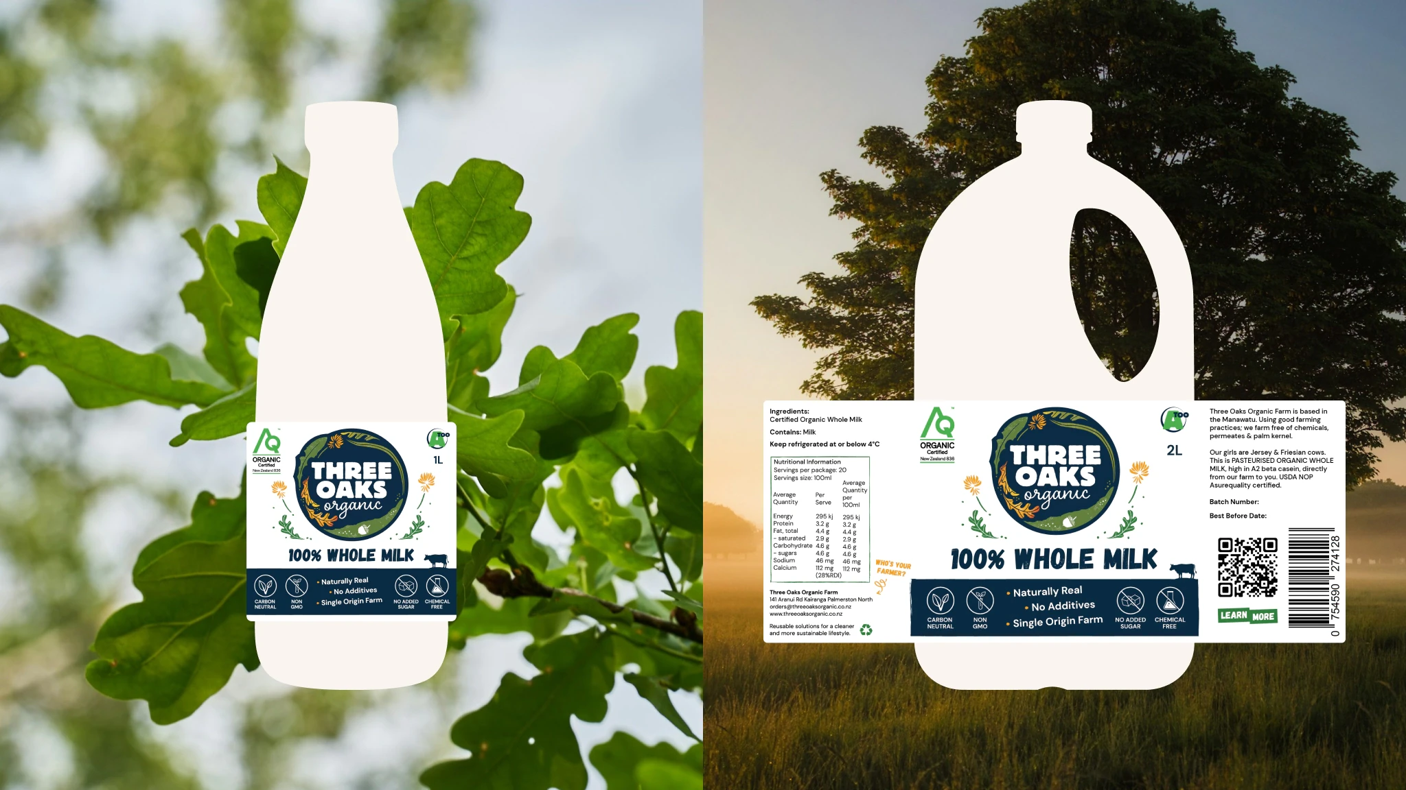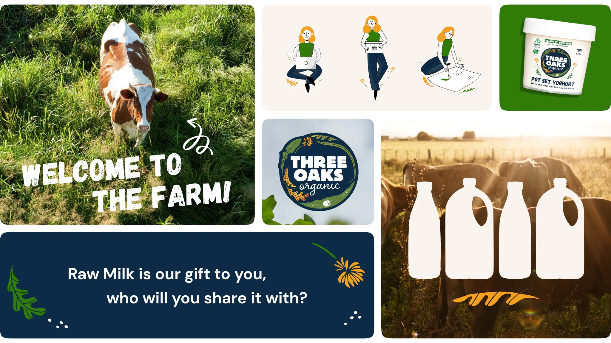In parallel, I developed a brand identity that extended to packaging across their growing dairy range and kept consistency with the core font and colours that Three Oaks customers were familiar with. Labels were designed to be easily recognisable while communicating the organic, handcrafted nature of their products.